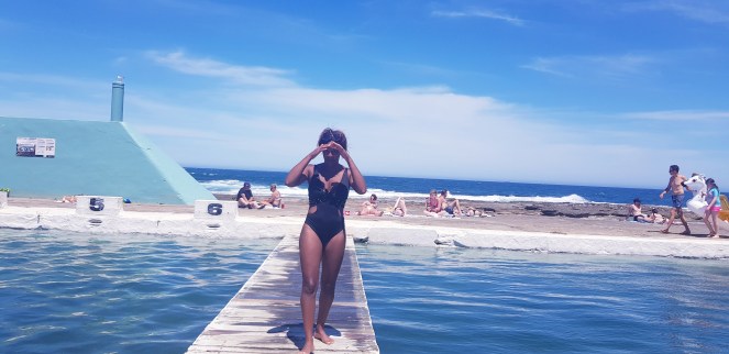 Vlak bij de zee want het bestaat uit zee water. Ligt er een zwembad wel volledig gescheiden van de zee en door de mens gemaakt. Maar hallo dat valt ook echt wel mee he. Je moet te minste niet tegen de golven op of in zee zwemmen. Gelijk ik zo een super zwemmer ben. Nee was mooi en aangenaam heb er ook een nieuwe vriendin ontmoet. Aan gezien mijn pizza/ mc do maatje richting Sydney was.