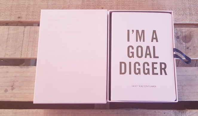 Het ergste van al is, dit jaar ging ik plannen! Ik heb er speciaal voor een boek gekocht. Misschien ook wel stiekem om de tittel en de kaft en doosje waarin hij zit. Mijn nieuw boek: “I’m a goal digger”.